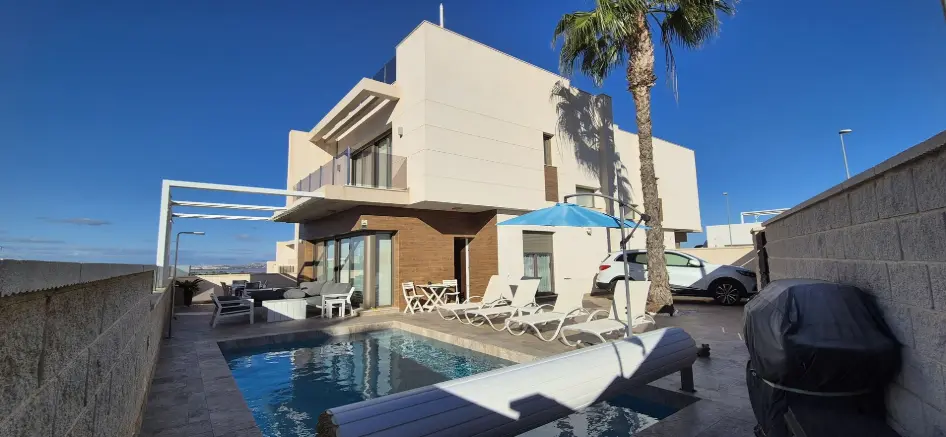 Située à proximité des plages de La Zenia, du centre commercial Zenia Boulevard, et des meilleurs terrains de golf, cette propriété prestigieuse dispose de 4 chambres, 3 salles de bains, une piscine privée, un jardin spacieux, et un solarium avec vue mer.
